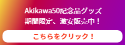 | 2022.12.01 | ・Akikawa50グッズ、年末在庫一掃セールを開始しました!! 単品オーダーには「Akikawa50記念シール」及び「植樹50記念シール」をそれぞれ1枚づつプレゼントします。 ※販売は終了しました。 |
